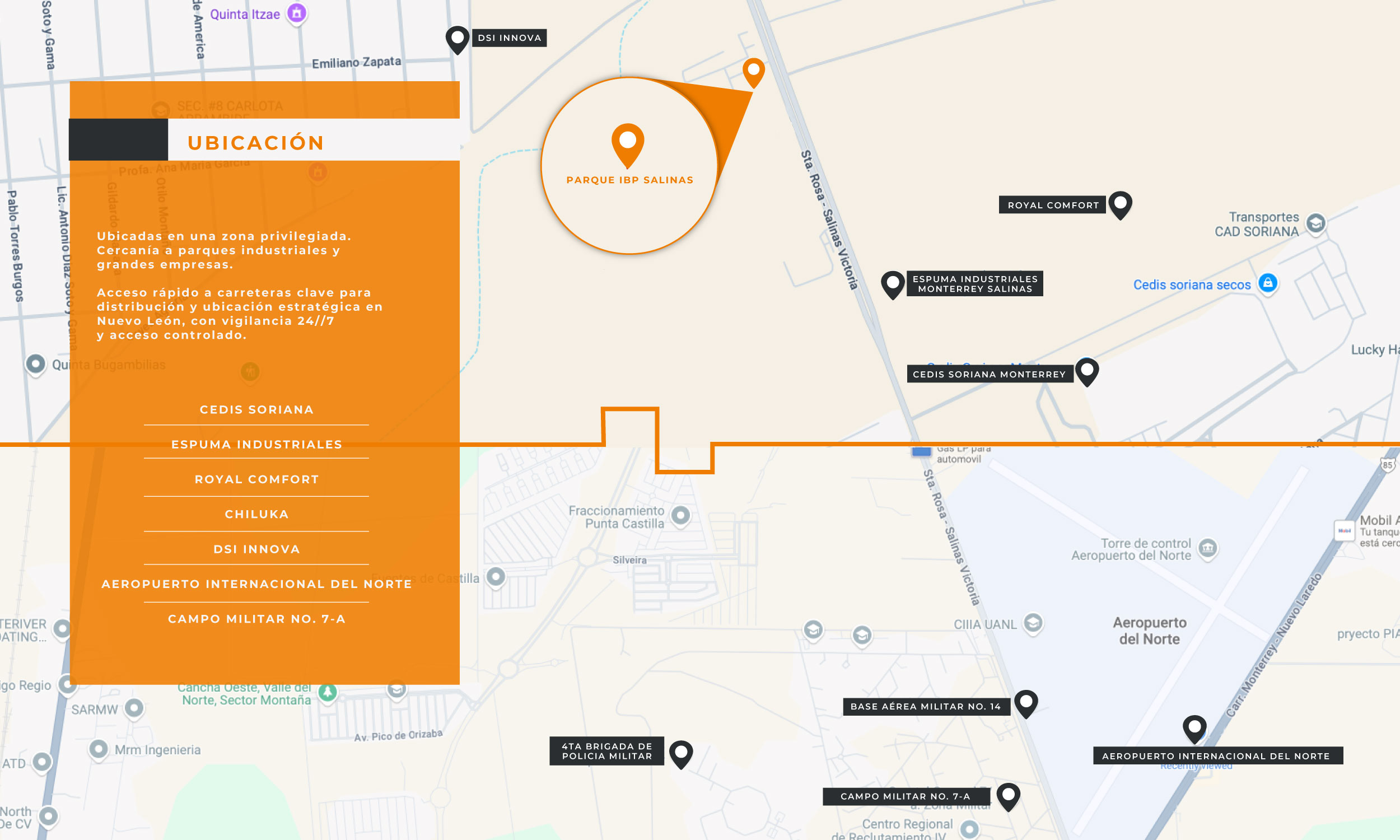 UBICACIÓN ESTRATÉGICA EN NUEVO LEÓN CON VIGILANCIA 24/7 Y ACCESO CONTROLADO Y LAS PRINCIPALES VÍAS DE TRANSPORTE, CONEXIÓN DIRECTA EN ZONA FRONTERIZA CON CARRETERA COLOMBIA Y LAREDO.